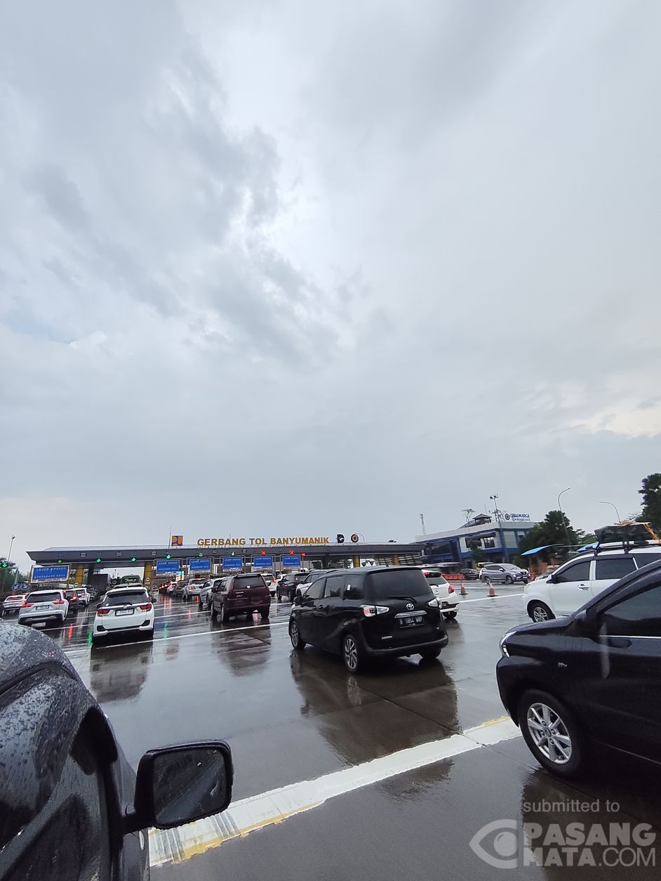 Pantauan Gerbang Tol Banyumanik, Semarang arah ke Solo-Jogja terpantau padat. Arus lalu lintas tetap berjalan lancar meski kondisi cuaca masih turun hujan cukup deras.