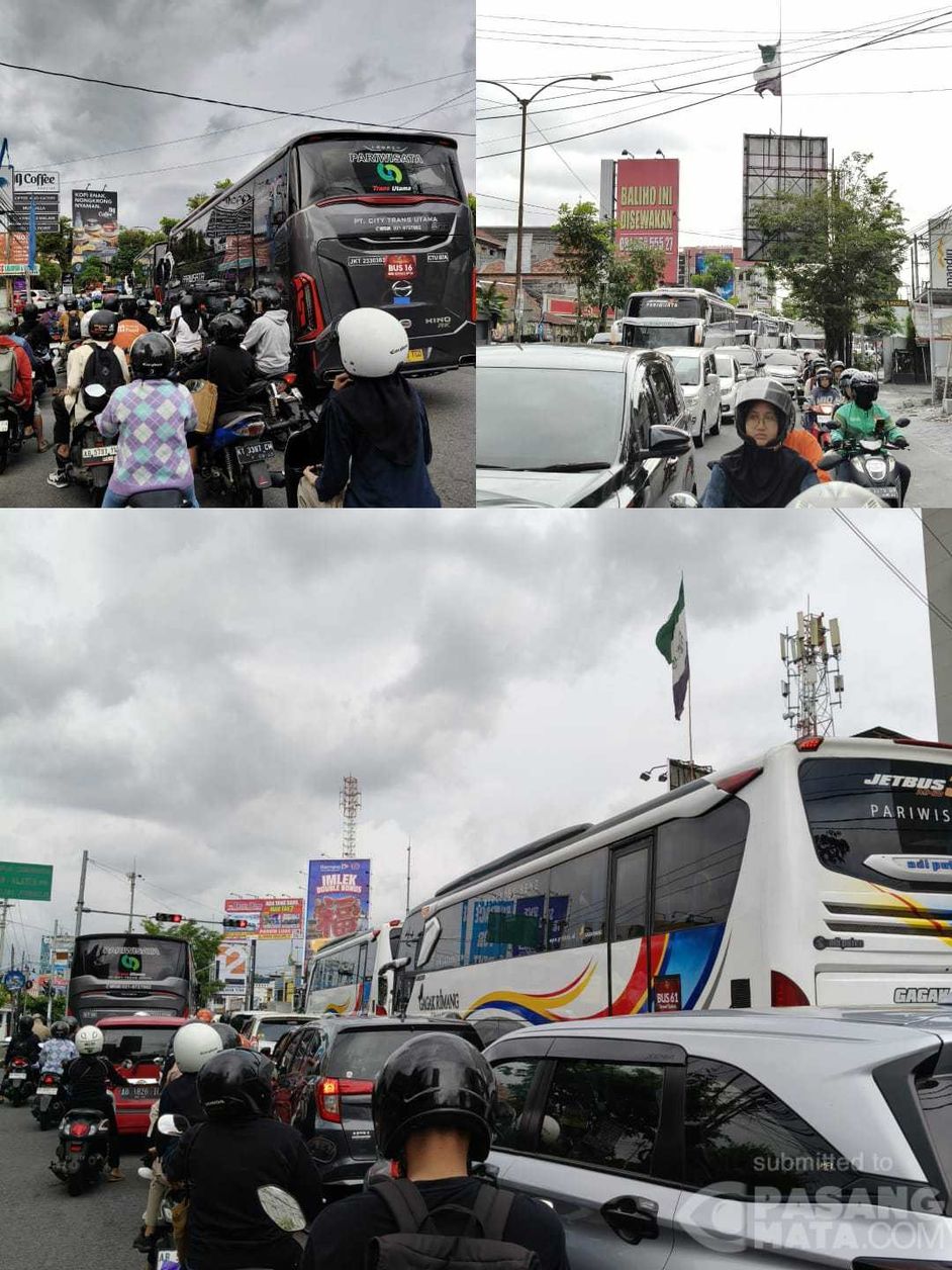 Antrean cukup panjang terjadi di lampu merah perempatan Gejayan, Condong Catur, Sleman, DIY, sore ini, Rabu 11 Februari 2026.