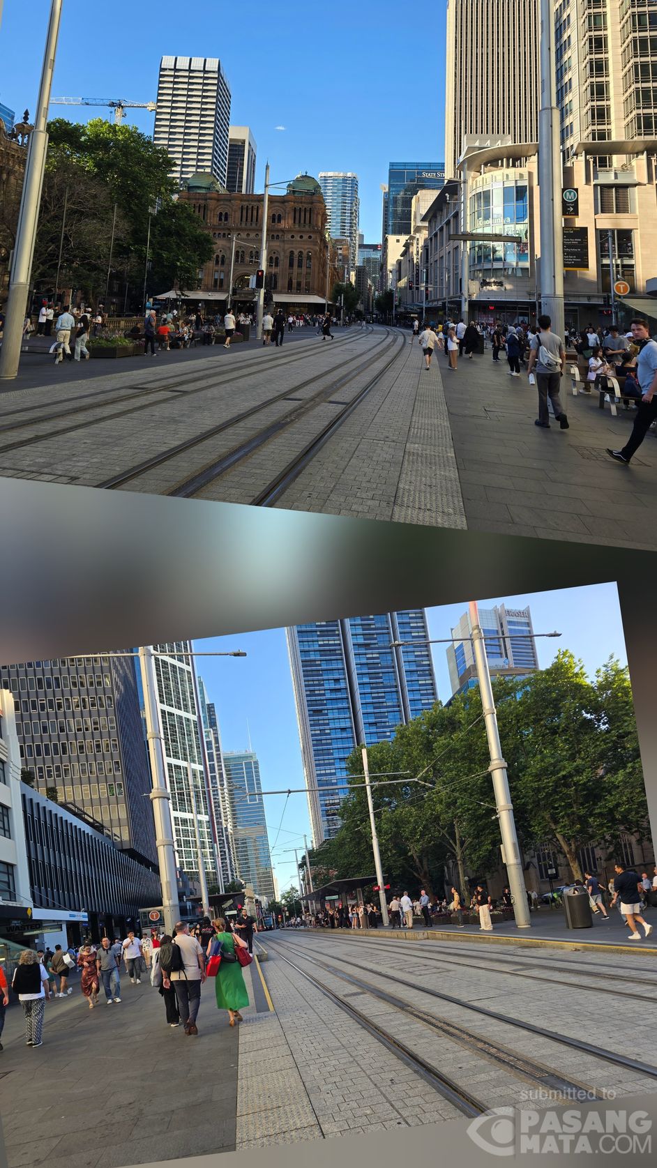Beginilah penampakan George Street, yang merupakan pusat kota Sydney pada waktu pulang kerja sore ini. Terpantau ramai, tetapi masih terasa sepi untuk ukuran Jakarta. Diperkirakan akan lebih ramai pada jam makan malam nanti.