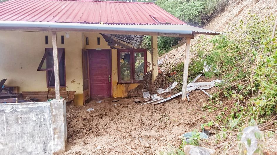 Lhokseumawe: 8 Kk harus mengungsi. Sunardi Rahman, di kompleks BTN Desa Padang Sakti, Dusun Seumatang Kecamatan Muara Satu Kota Lhokseumawe, terkena Longsor hingga saat ini rumah ini belum terurus, Sunardi Rahman saat ini pindah ke rumah orang tua nya. penyebab longsor hujan deras landa Aceh,Namun dalam kejadian ini tidak ada korban jiwa. Foto kiriman Sunardi Rahman.