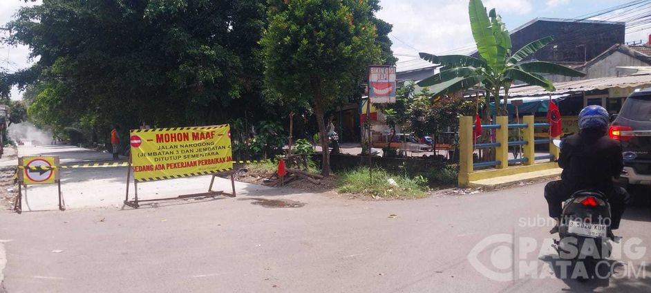 Ada pengecoran, jalan di perumahan Narogong, Rawalumbu Kota Bekasi ditutup satu jalur.