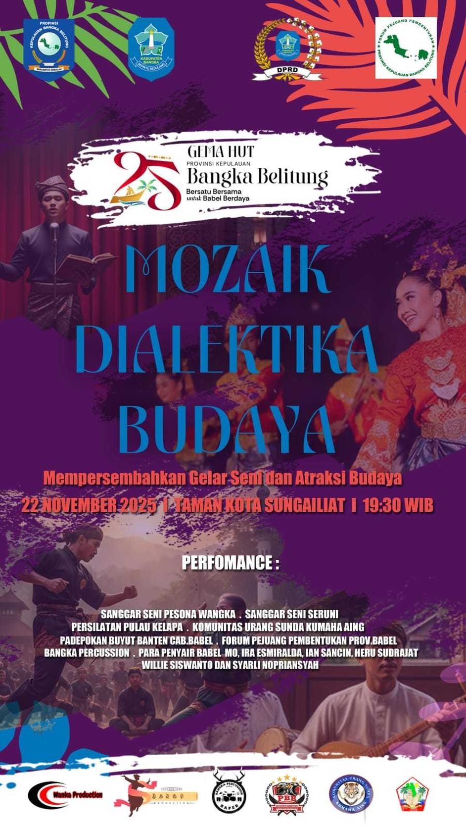 Seniman Kabupaten Bangka, gelar pentas seni dalam memperingati HUT ke 25 Provinsi Kepulauan Bangka Belitung. Giat diselenggarakan Sabtu (22/11/2025) malam di Taman Kota Sungailiat Bangka. "Pentas seni ini murni kerja bareng para seniman dan pekerja seni serta sanggar seni yang ada didaerah ini, " tutur Junaidi Rahim, penggagas pentas seni. (heru sudrajat)