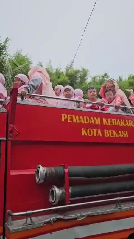 Senangnya anak TK naik mobil pemadam kebakaran di perumahan…