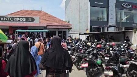 Bansos cair, warga Bekasi penerima Bansos antusias antri di…