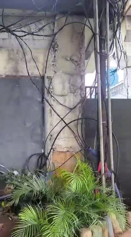Penampakan kabel semrawut di pinggir Jalan Gatsu dekat…