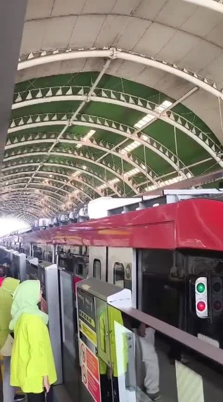Jelang siang, suasana Stasiun LRT Cikunir 1 Bekasi lebih…