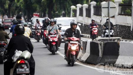 Potret pengendara motor yang melawan arus jalur lalu lintas…