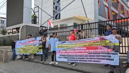 Gabungan organisasi guru menggelar unjuk rasa di kawasan…