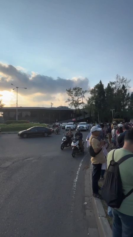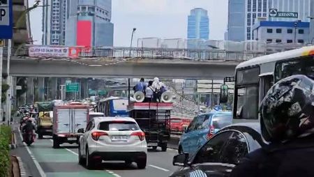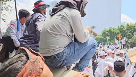 Mobil orasi tampak melintas di jalan Gatot Subroto,…