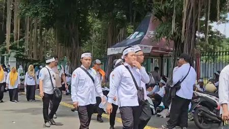 Dengan berseragam putih ribuan organisasi guru berkumpul di…