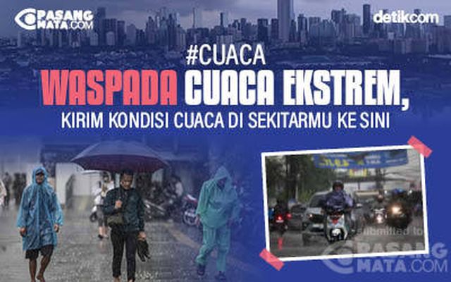 Kontribusi seputar kondisi cuaca di seluruh wilayah Indonesia. Share foto atau video kontribusi seputar efek dari musim hujan seperti banjir, macet, jalan longsor, dll