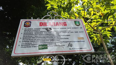 Sebuah papan yang berisi larangan di Stadion Manahan Solo…