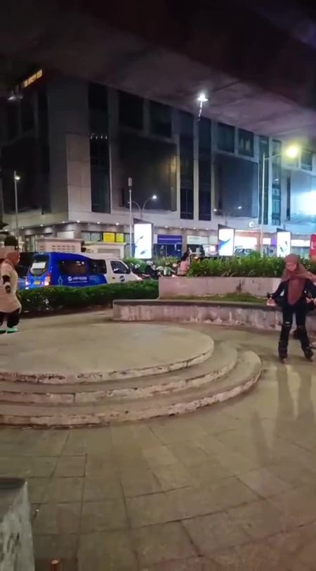 Asyiknya bermain sepatu roda di bawah fly over Kuningan…