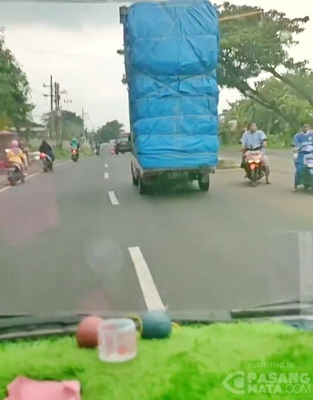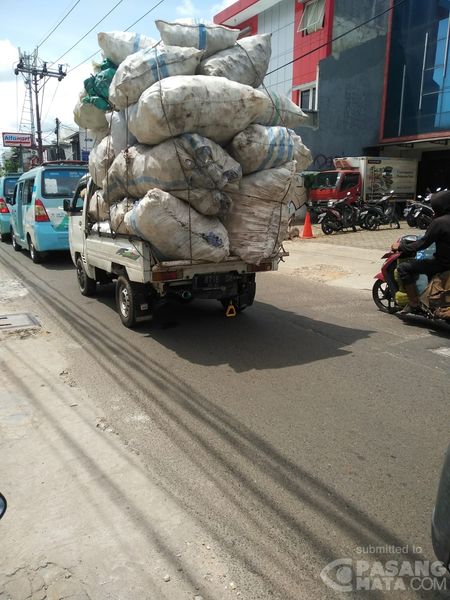 Hati-hati ada mobil pick up yang membawa barang berlebihan…