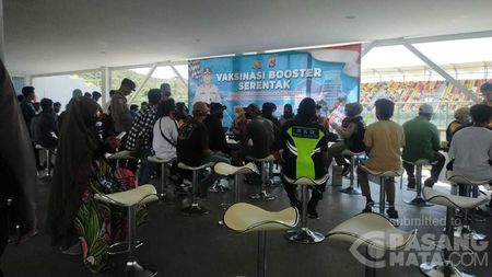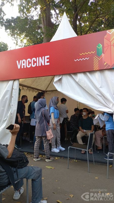 Booth vaksinasi di Istora Senayan melayani vaksin dosis 1…