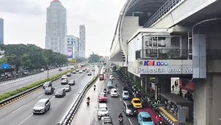 Arus lalu lintas kawasan sekitar Stasiun LRT Pancoran yang…